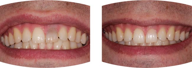 Another example is internal tooth bleaching. It is surprisingly common to have patients ask about how they can replace a grey or darker tooth. Sporting trauma is often caused by a simple ‘whack in the mouth’ from a hockey stick, ball, or contact in a rugby tackle. A grey tooth is usually where the tooth nerve has been permanently damaged and the tooth has ‘died’. Internal bleaching involves routine root canal treatment with the addition of tooth whitening agents being inserted into the tooth to whiten the tooth from the inside out.